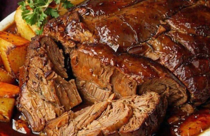 - Step 4: Cook: Set the slow cooker to high and cook for 4 hours. Continue to baste the roast with the sauce occasionally throughout the cooking time to ensure all the flavors meld together.