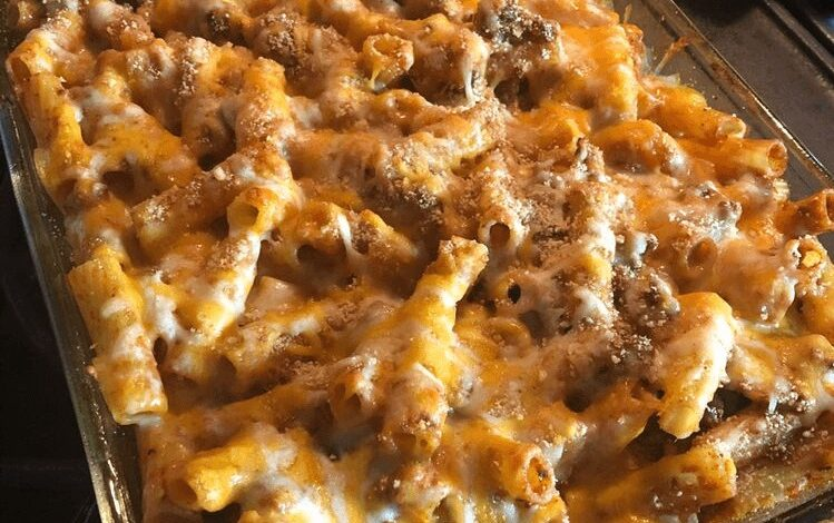 - Repeat & Top: Add the remaining penne, beef mixture, and creamy cheese. Finish by sprinkling the remaining mozzarella and Parmesan on top.