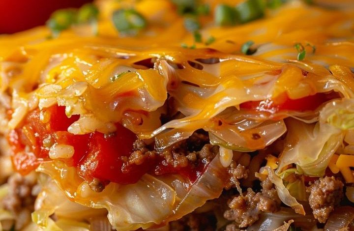 This Cabbage Beef Bake is a filling, one-pan casserole loaded with savory flavor and comforting ingredients. It’s made with tender layers of seasoned ground beef and cabbage, combined with rice and diced tomatoes, then baked until bubbling and finished with a layer of melted cheddar cheese. This simple, satisfying meal works well for busy weeknights.