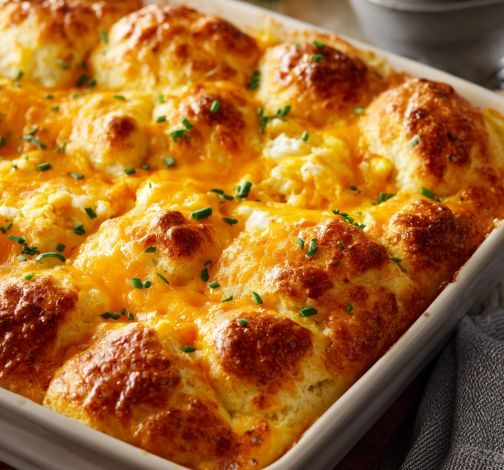 This simple breakfast casserole comes together fast by using refrigerated biscuit dough as the base, topped with eggs and melted cheese for an effortless morning meal.