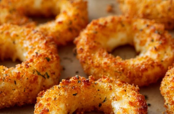 These crispy, cheesy onion bites make the perfect appetizer — tender onion rings stuffed with gooey mozzarella, coated in a seasoned breadcrumb crust, and baked to golden perfection.