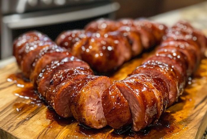 These Maple BBQ Hasselback Kielbasa Bites are a fun, flavorful, and easy appetizer or main dish. The “Hasselback” cuts allow the sweet and smoky maple BBQ glaze to soak deeply into the sausage, resulting in tender, caramelized bites with crispy edges.