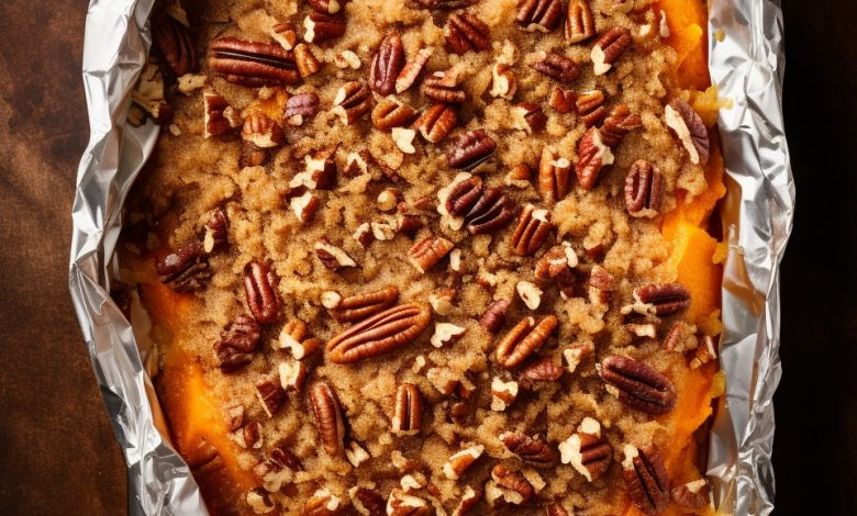 This classic Southern side dish features a rich, creamy sweet potato filling topped with a sweet, crunchy pecan streusel, perfect for holiday gatherings.