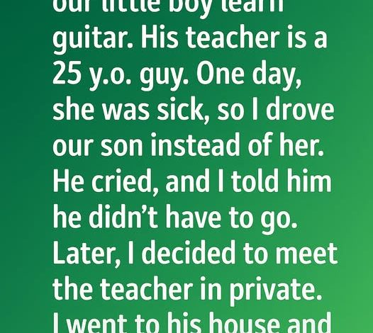 My wife was determined that our little boy should learn to play guitar. His instructor was a 25-year-old young man. One day, when my wife was sick, I offered to drive our son to his lesson. He started crying in the car, so I told him it was okay to skip it if he wanted. Later, though, I decided to meet the teacher myself to understand what was going on.