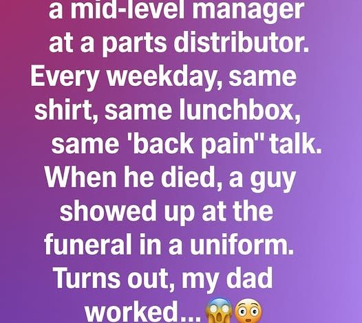 But when he passed, a man in uniform showed up at the funeral. That’s when the truth came out: my dad wasn’t a manager at all. He was a maintenance worker — the person who quietly kept an entire facility running. The man said, “Your dad saved our day more times than I can count. He never wanted credit, but he earned it all.”