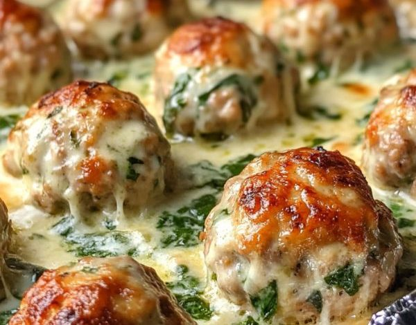 This recipe pairs tender, moist Baked Chicken Ricotta Meatballs with a creamy, herby Spinach Alfredo Sauce for a comforting and flavorful Southern-inspired meal.