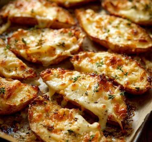 These potato wedges are perfectly seasoned, baked to a crispy golden brown, and topped with a mix of melted cheddar and mozzarella cheese—ideal as a snack or side dish.